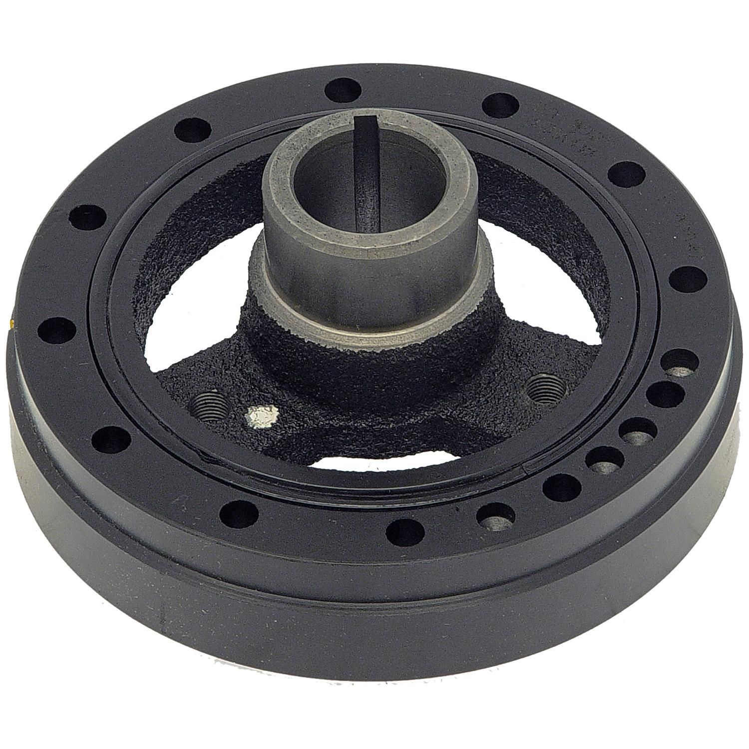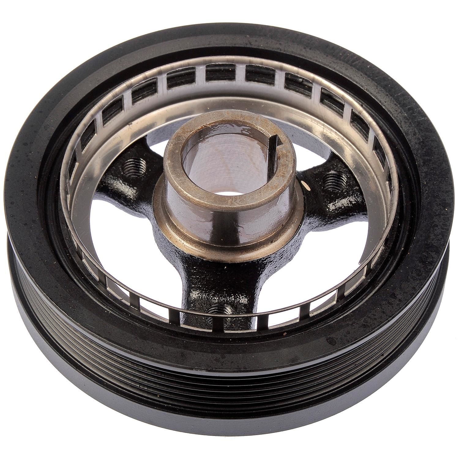 Rubber is the part that most often fails in a crank pulley crank balancer or harmonic damper.